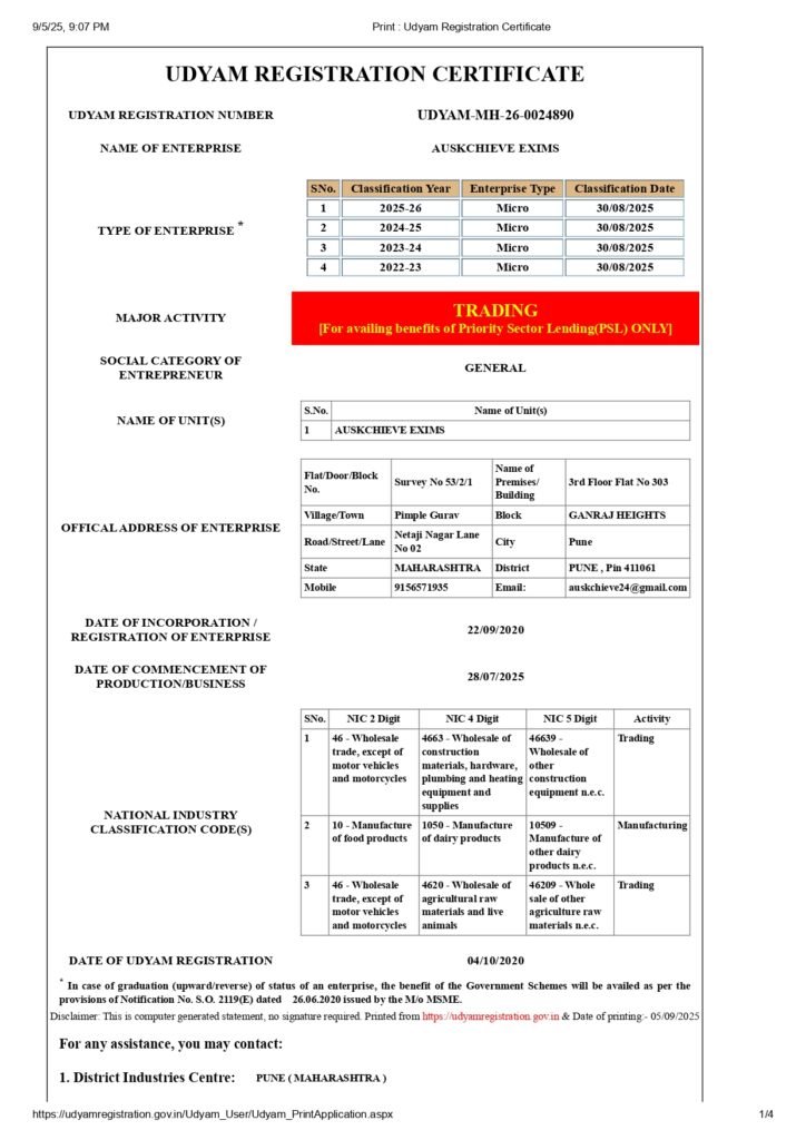 With a focus on quality, reliability, and timely delivery, Auskchieve Exims brings the freshness, flavor, and purity of India’s produce to international markets — building long-term partnerships based on trust and excellence.